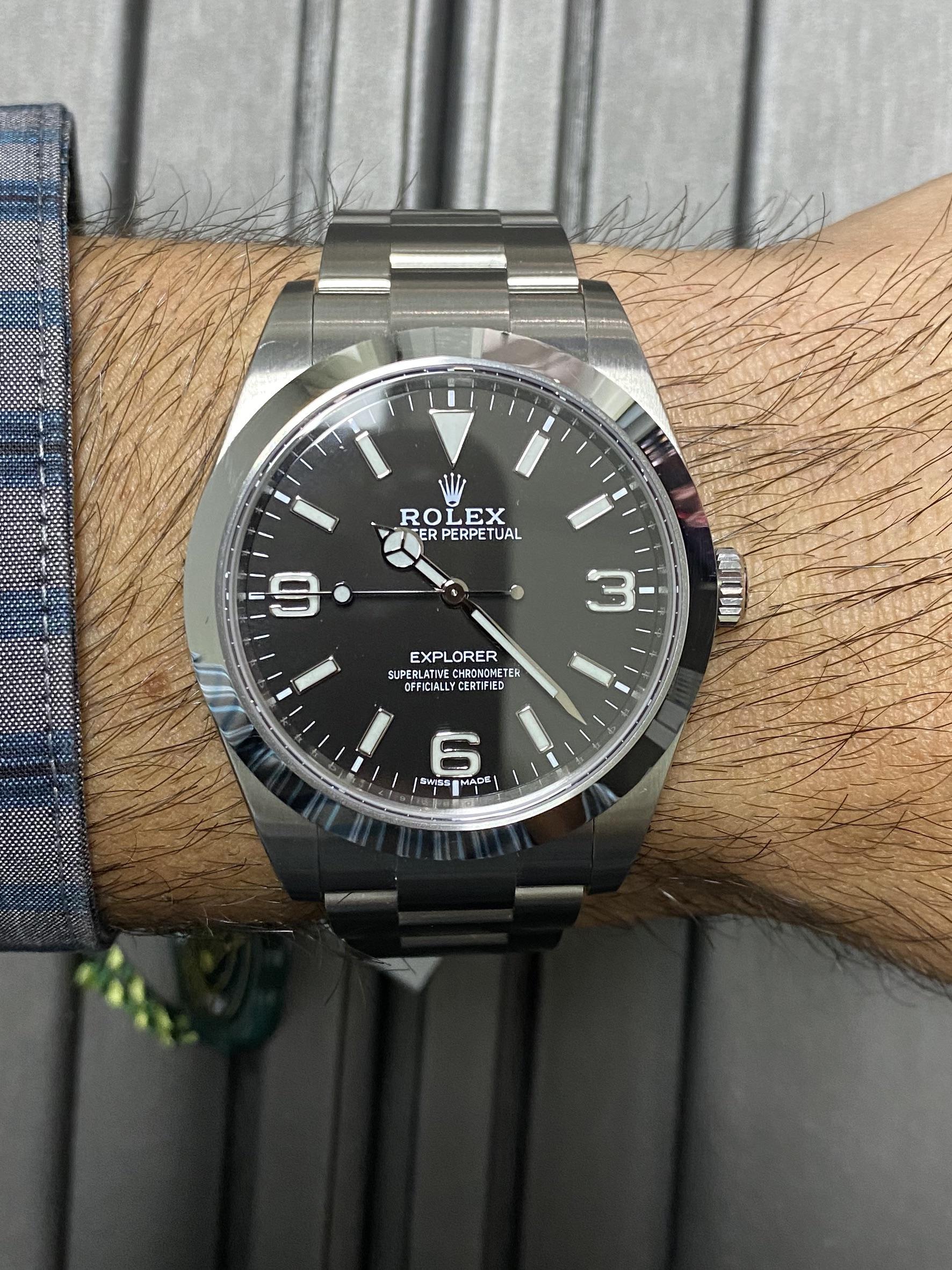 The rolex explorer featured in this comparison is the 39mm rolex explorer 214270 black luminous. 36mm would be even a little more understated than the 39mm which is one reason i liked the exp in the first place. I suppose having a 39mm explorer and 41mm op is a bit confusing, so, a heritage move to 36 at least gives the explorer a bit of raison d'être. In general i feel rolex slightly overshot with their 39mm cases, 38mm would have really hit the spot. Die uhr wirkt mehr wie 34 mm. Now when i see a 36mm i do feel like the size and proportions might be a bit better. The rolex explorer featured in this comparison is the 39mm rolex explorer 214270 black luminous. With all that said the thing that will keep the 39mm on my wrist is …. Technical specifications of this new watch are:
